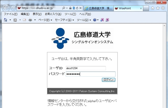 1.ブラウザよりSSOのサイトにアクセスし、alphaのユーザ名とパスワードでログインします。