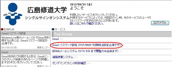 2.「Gmailパスワード設定(POP/IMAP利用時は設定必須です)をクリックします。